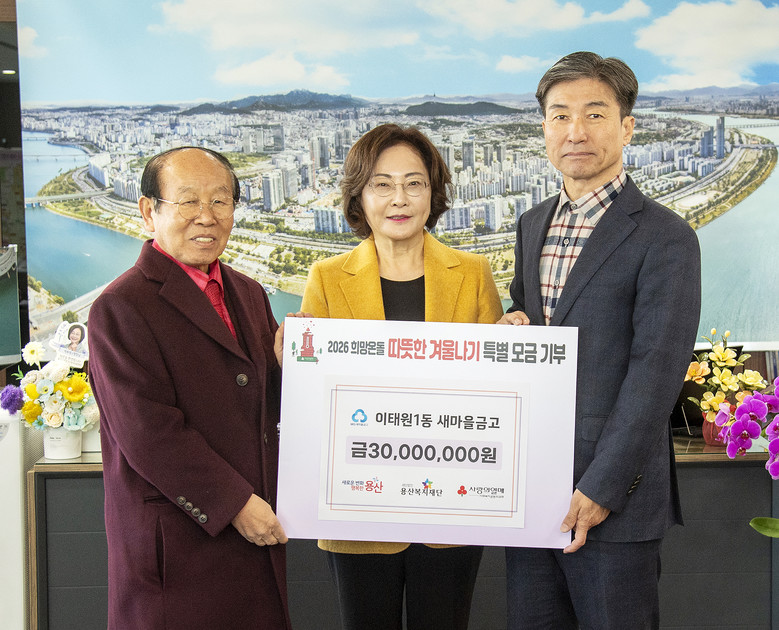박희영 용산구청장은 “어려운 경제 여건 속에서도 매년 꾸준히 나눔을 실천해 주시는 이태원1동 새마을금고에 깊이 감사드린다”며 “기탁된 성금이 도움이 절실한 이웃에게 꼭 필요한 시기에 전달될 수 있도록 세심히 살피고, 민관이 함께 만드는 촘촘한 복지 안전망을 더욱 강화해 나가겠다”고 말했다.