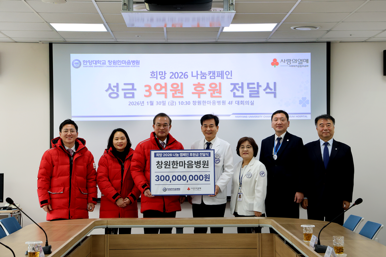 창원한마음병원은 지난 30일(금), 본원 4층 경남사회복지공동모금회(회장 강기철)가 주관하는 ‘희망 2026 나눔 캠페인’ 성금으로 3억 원을 전달했다고 밝혔다.