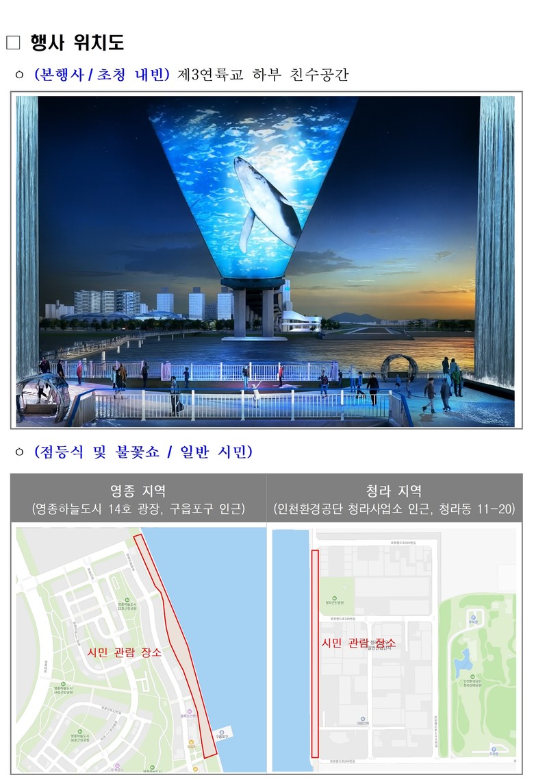 아울러 영종과 청라에 마련된 시민 관람 공간에서 시민들도 교량 점등식과 불꽃쇼를 관람하며 제3연륙교 개통의 의미를 함께 나누는 축제 분위기가 이어졌다.