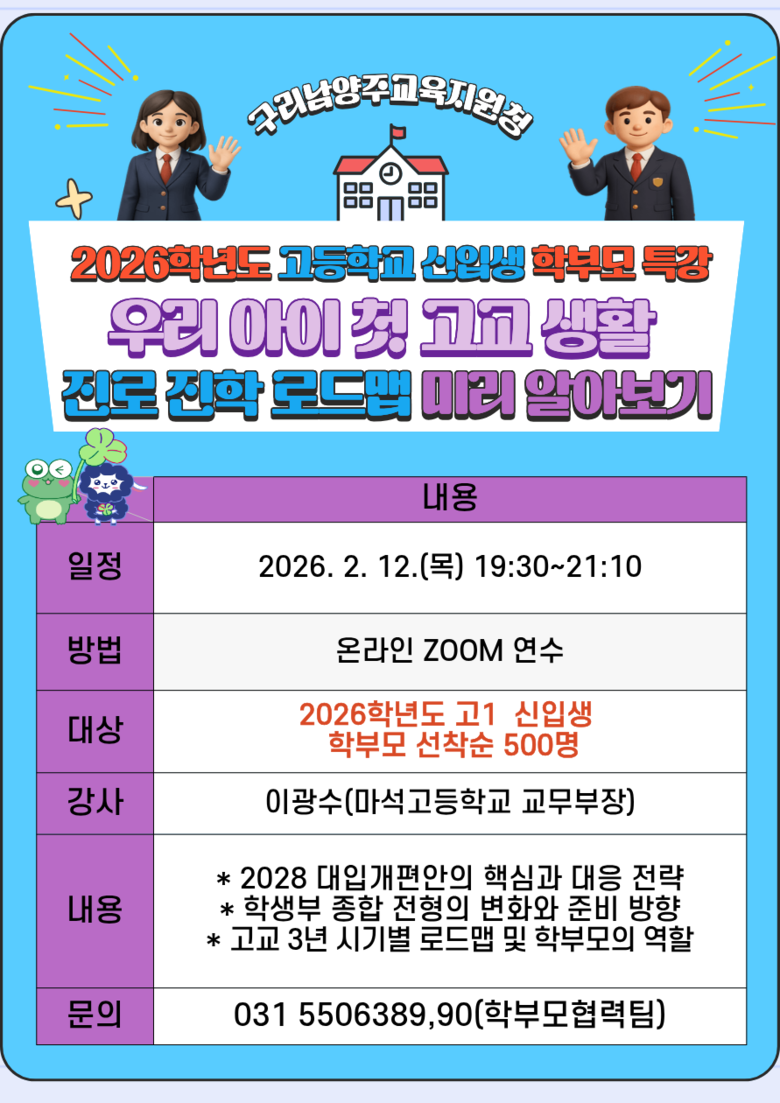 구리남양주교육지원청, 2026 중·고 신입생 학부모 비대면 연수 성황리 개최